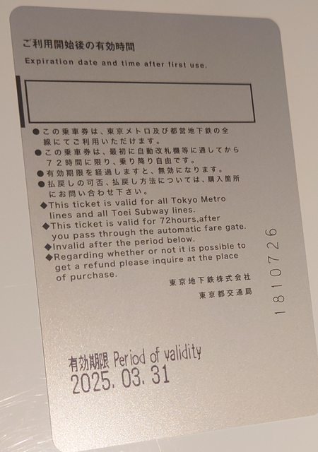 標題[讓售] 東京72小時地鐵券