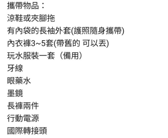 出發前給旅伴的建議清單如下,