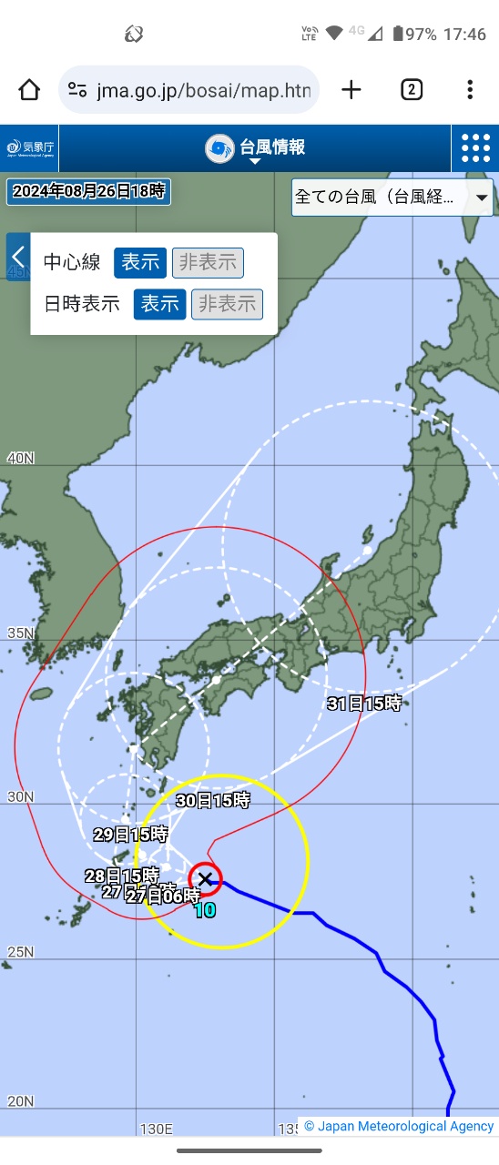 → ybite : 日本氣象廳最新報 走更慢了 30日才到沖繩 08/26 03:01