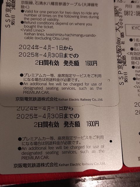 京阪電車兩日券剩一天 ?4張