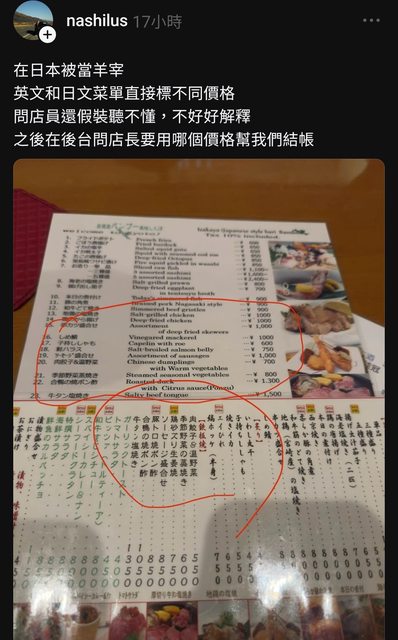 → m13579 : 有膽就大剌剌在菜單上面寫外國觀光客比較貴啊 沒有 09/03 18:43
