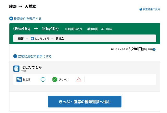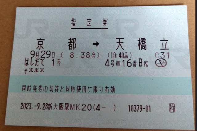 : 但在窗口要劃位新大阪→福知山→天橋立的票時,窗口說不能劃福知山→天橋立的橋立號,說那邊不隸屬jr所以無法劃位