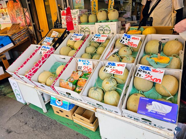 場外市場的店家大多數都集中在桑園発寒通這條路上的兩邊,除了有海鮮、蔬果、肉類、