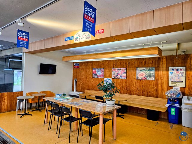 場外市場也有提供免費休息區,有WIFI,洗手間與洗手台,可以在旁邊買東西進來這吃。