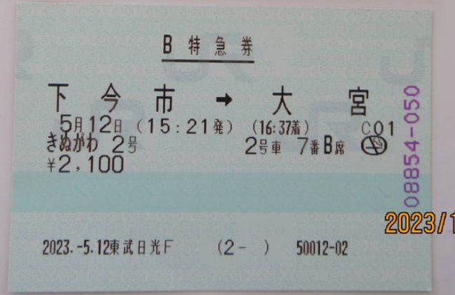 2.淺草~下今市間(經過栗橋)鐵路來回1次,使用特急時要另付特急料金