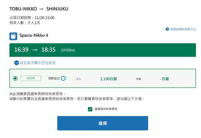 → nibarity : 目前有看到有人在東武日光憑東京廣域劃位成功 11/16 22:38