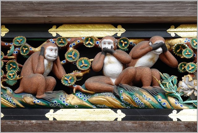 顯示了名為「不見、不聞、不言」(日语:見ざる、聞かざる、言わざる)