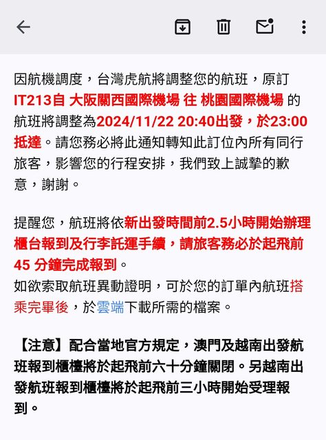 推 ring0816 : 只能自已去看航班動態,昨晚搭IT203也是延遲了90分 11/22 10:01