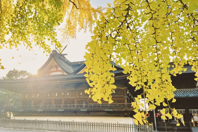 神社主殿旁邊有一棵樹齡600年大銀杏