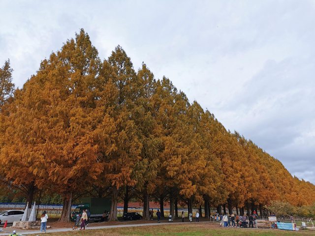 水杉大道中間的咖啡廳,旁邊有大型免費停車場,