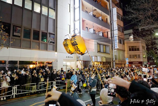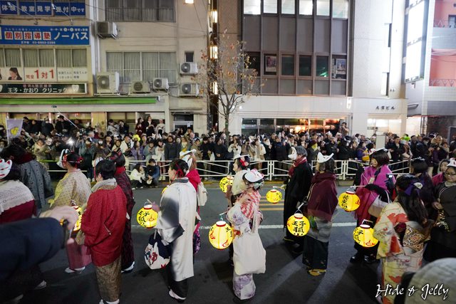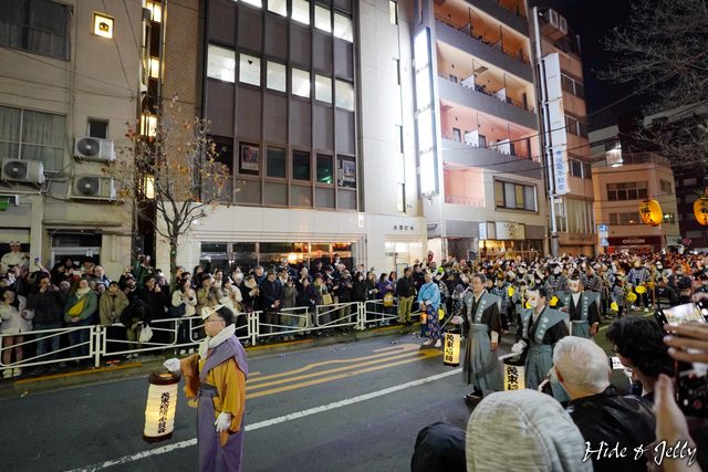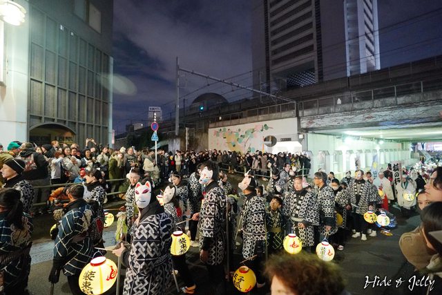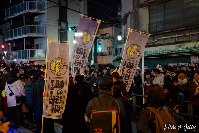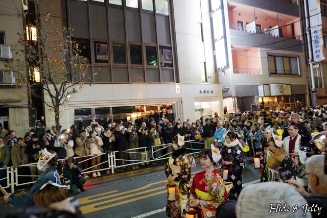 尚未到午夜時分,行列的隊伍也已經開始準備了,大大的燈籠寫著「大晦日の狐火」,象
