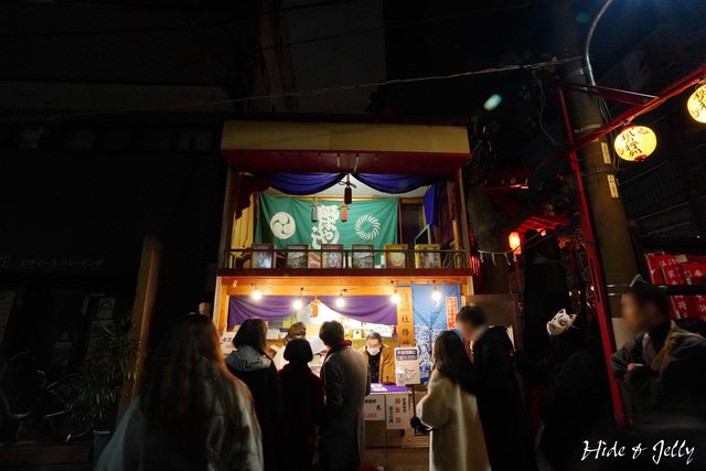 有點狹小的街坊中,擠滿了人潮,要不是插著「狐の行列」的旗子,許多人帶著狐狸面具