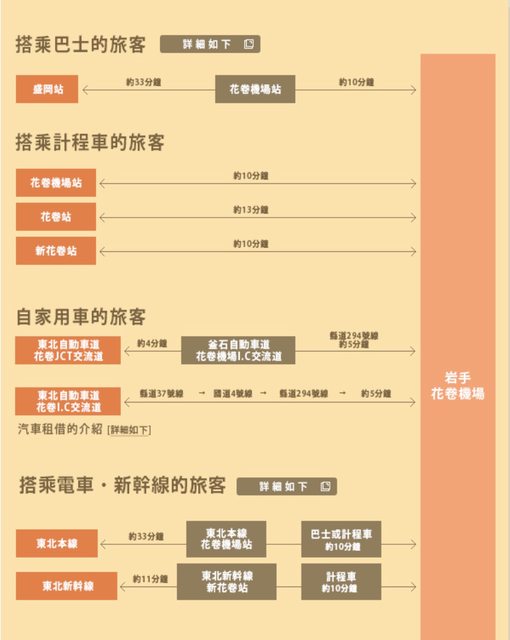 搭計程車至JR花卷機場站或新幹線新花卷站轉鐵路也不會太貴(車程約10分鐘)。