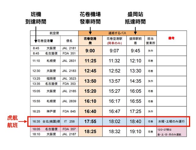 間蠻常會更動的。所以出發前請參考機場官網或岩手交通株式會社的官網,除了日文外,