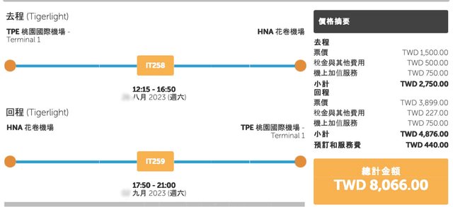 總結來看,就出發的第一天來說,我很喜歡虎航花卷航線的時間,不需要一大早就出門,