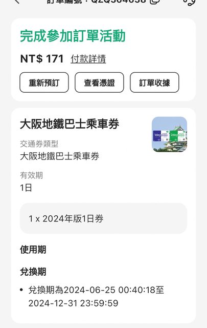 一日券票券效期至2024.12.31,實體票抵達大阪即可用。售出不退。