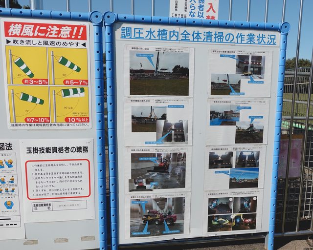 我參訪當天正好有清潔作業,所以不是全區都能拍照。清潔方式是將器械懸掛下降後,再一車車地將淤泥向上運。車子後方的矮柱是為防車子往前誤衝立坑的車檔。