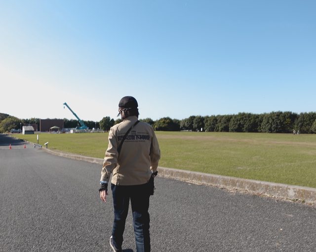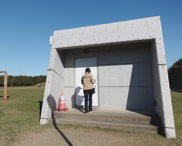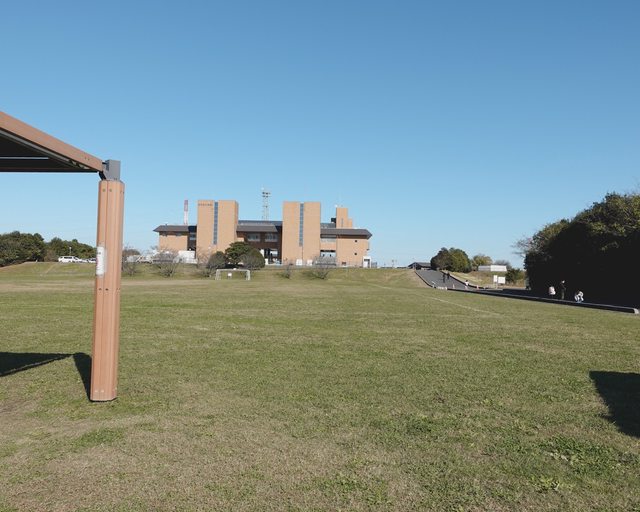 從放水路的入口望向龍Q館,這片草地正下方便是地下神殿,大約兩個足球場大小。