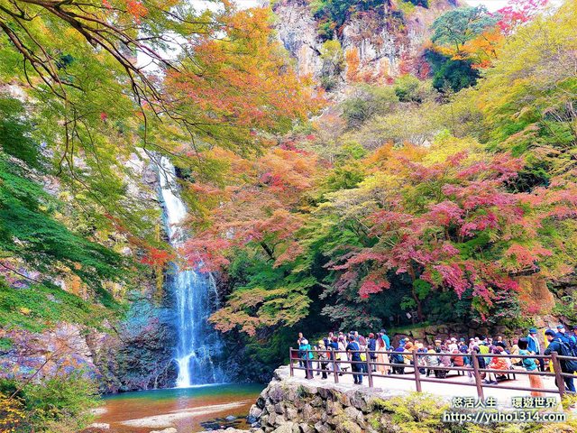 色,十分美麗動人!園區內更有一處被選入日本百大瀑布的「箕面大滝」(箕面大瀑布),