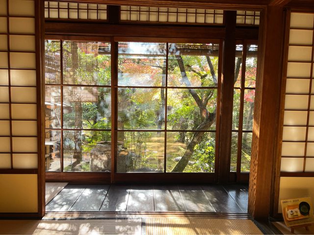 大原舊本邸裡面的茶室楓葉正在慢慢變色