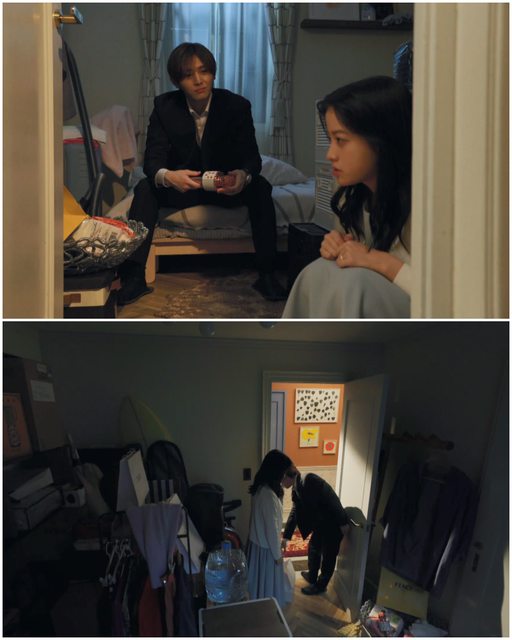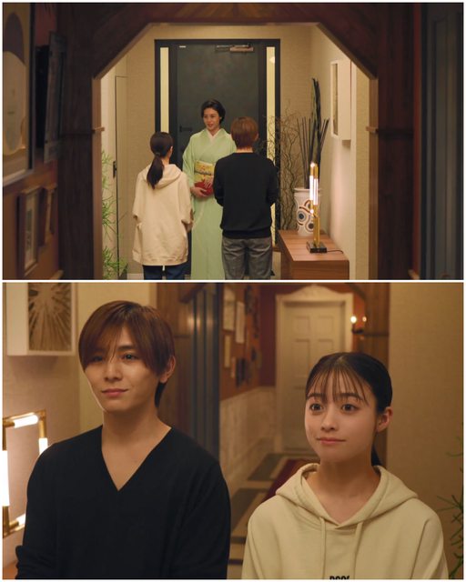 EP4 後半,綾華心情不好,東鄉站在走廊,抵著綾華打開的房門不讓她關上。