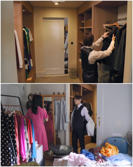 跟 EP2 最後東鄉房間內部作比對,可以推斷更衣室入口是在床側近床頭處。