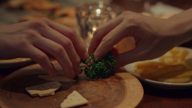 在吃完主菜只剩巴西里時服務生要將盤子收走