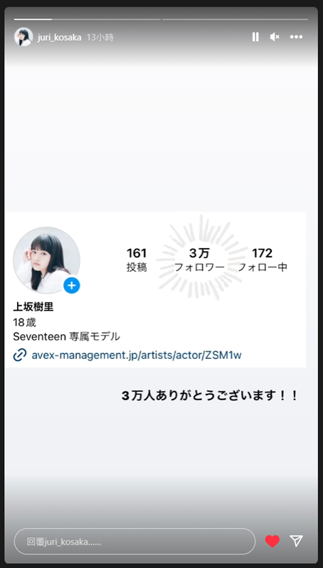 → Ilat: 直接出了新聞 上坂樹里的IG也因第七話播出後粉絲漲到破三萬 12/03 11:00
