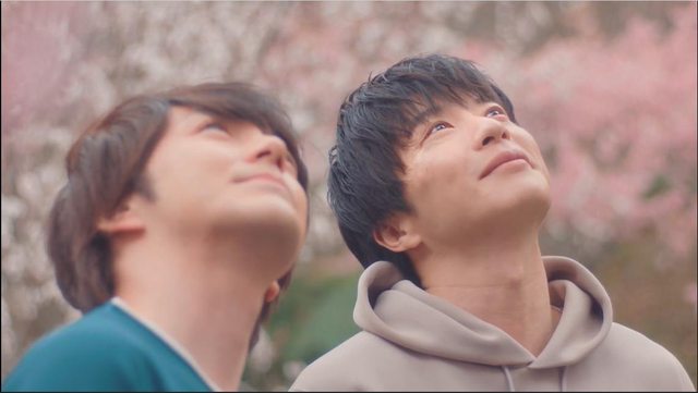 春田和牧最後再給觀眾一個深深的吻,搭配櫻花,美到讓人要哭出來的。