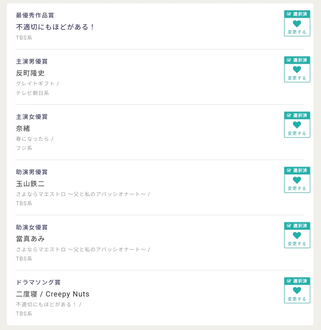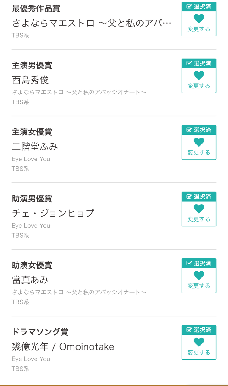 3.點選想要投票的獎項(最優秀作品賞、主演/助演男(女)優賞、主題曲賞)