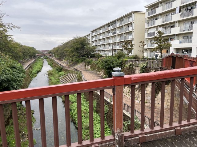 石神井川兩邊是同系列的公寓,看起來整齊劃一,