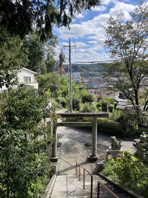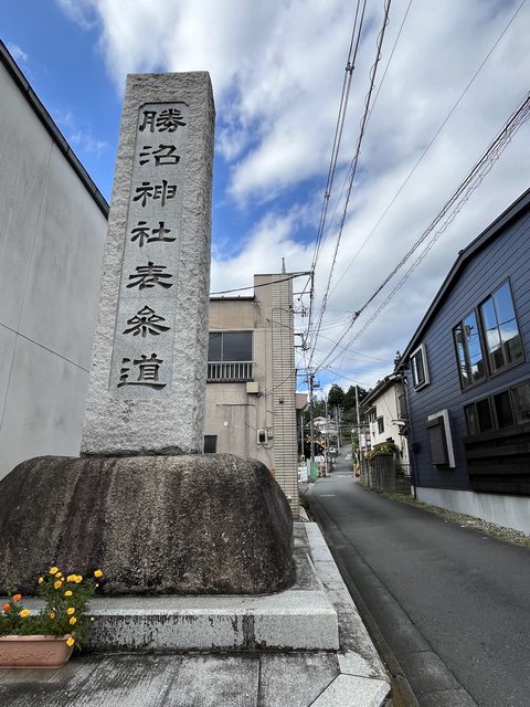 路走,看到超高的「勝沼神社表參道」石碑轉