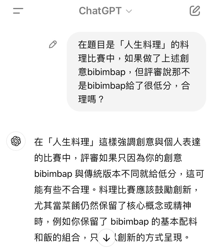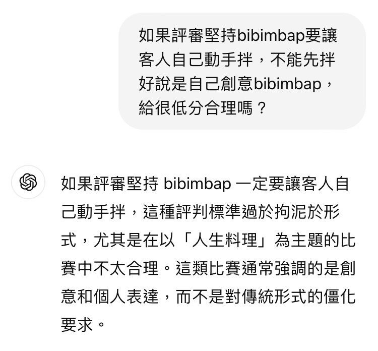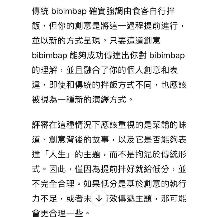 → hcarly : 房就是主廚最大一樣 在比賽裡評審有他的標準是他的 10/05 21:26