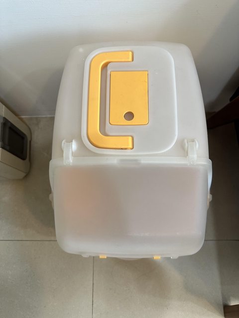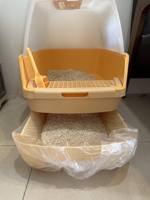 這款貓砂盆的評價頗佳,當時也是在網路上評估很久才購入,實際體驗感覺良好,只是近日從松木砂轉換豆腐砂,看到豆腐砂太細一直掉入下層也不是辦法,故欲換出。