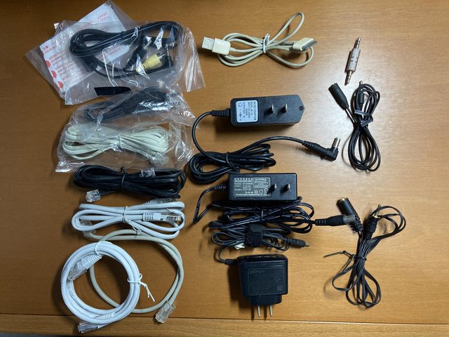變壓器、網路線(短的)、電話線、音源延長線(短的)、很舊的蘋果傳輸線、Nokia電