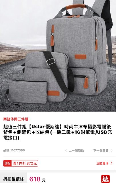物品名稱:時尚牛津布休閒攝影包/電腦包三件組(一機二鏡+16吋筆電/USB接孔