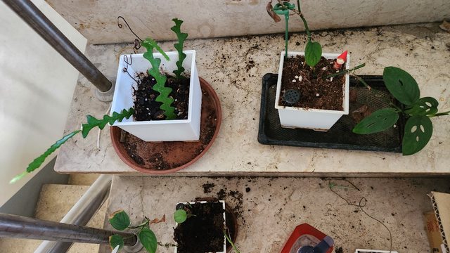 鯊魚劍跟兩盆洞洞蔓綠絨