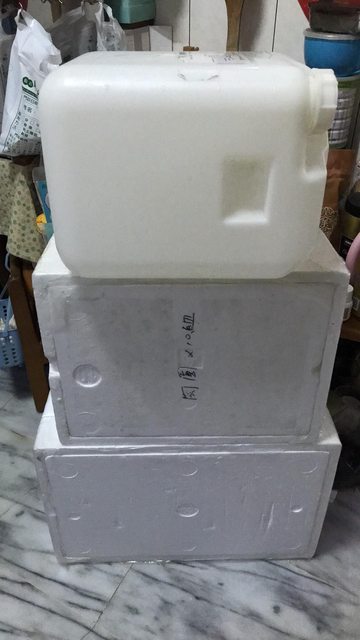 : HDPE(2號塑膠)材質,非全新,原來是酒精桶。