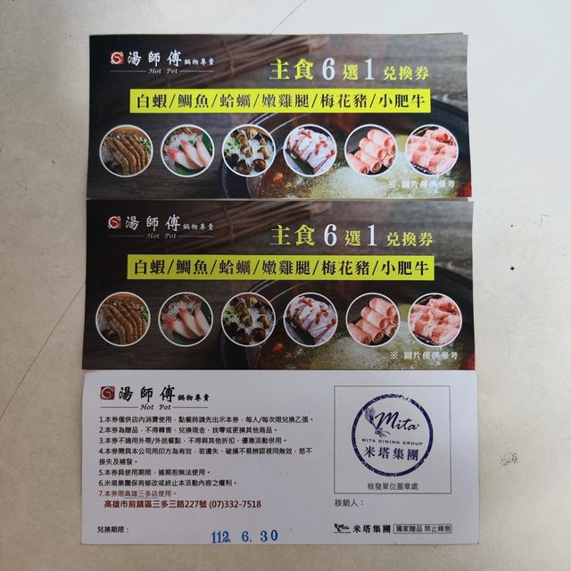 1. 湯師傅鍋物專賣(主食兌換券*3)