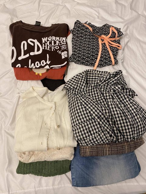 1.女性衣物 內有上衣、針織外套、短裙、牛仔褲…等白色衣服有污漬 介意勿取