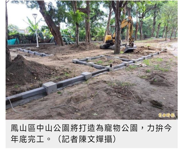 物公園,目前工程已動工,預計今年底完成,將成為鳳山區首座寵物公園。