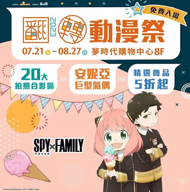 【翻轉動漫祭2023高雄】 日期:2023/7/21~8/27 地點:夢時代購物中心8f 重點:今年有超大安妮亞跟史萊姆氣偶!!! 去年我們家噴了不少錢錢QQ 但是今年還是要去 戰利品先買起來 以後給小孩當獎品超好用的 https://i.imgur.com/JorKCFE.jpg