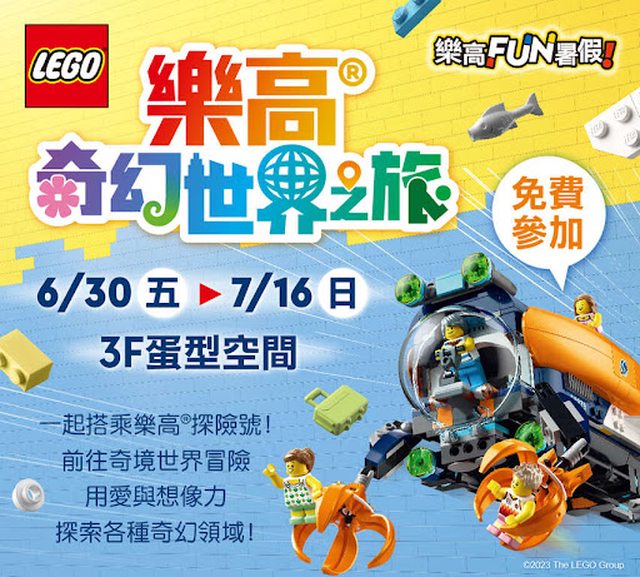 【樂高奇幻世界之旅】 日期:2023/6/30~7/16 地點:高雄夢時代3F蛋型空間 重點:全部免費入場 https://i.imgur.com/Q5ne57f.jpg