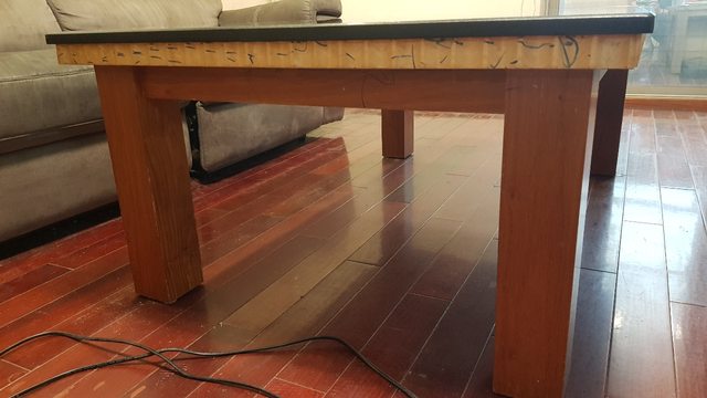 大理石實木茶几很重丶質感很好但對我的客廳稍大故換出。茶几建議要有兩位以上男生來