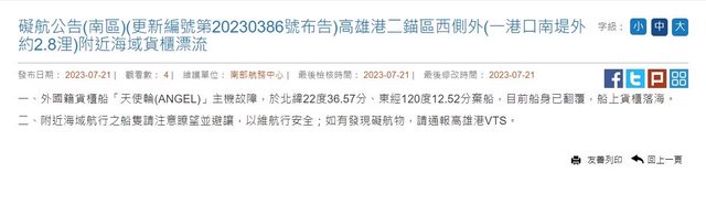 今早已經剩船頭還在水面 外流影片已經看出兩道攔油鎖無法阻止溢油 看顏色是白色應為滑油 已經向南延伸10海里 最近不要吃海鮮吧… ※ 引述《rdadi (不專業技術員當噁爛八年6)》之銘言: : https://i.imgur.com/hOmHuWA.jpg