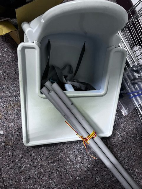 餐椅安全帶完整,但桌面有污漬