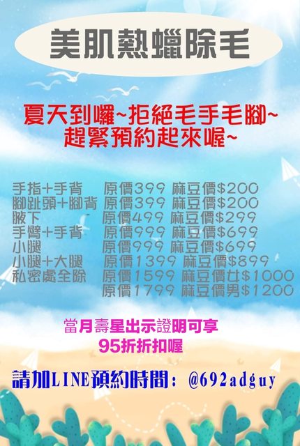 標題夏日熱蠟除毛 享麻豆甜甜價,壽星另有折扣