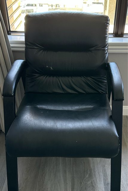 物品名稱:單人真皮椅,原本放在書房辦公讀書用,因房間改造沒有用處送出,有使用痕