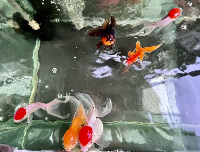 物品名稱:獅頭金魚六尾(含尾鰭約12公分)+黃金琵琶鼠一尾