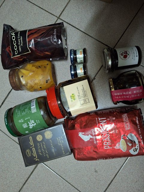贈即期調味料咖啡豆熊寶貝,不知能不能用快煮鍋,鞋子,飯店牙刷備品組等